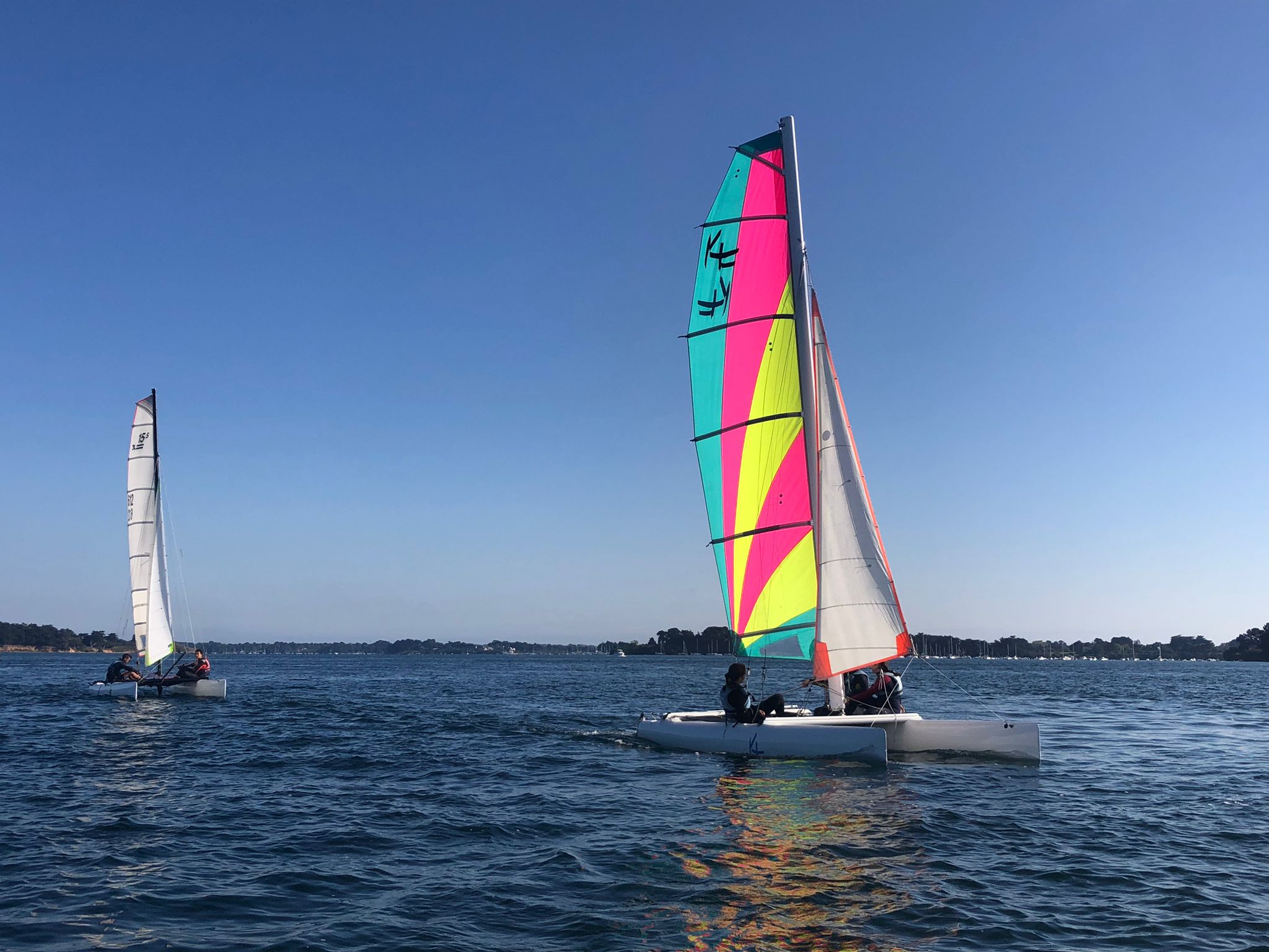 L’encadrement se fait par des moniteurs diplômés et les élèves font du catamaran et de la planche à voile. L’accueil se fait à Larmor-Baden et à Séné